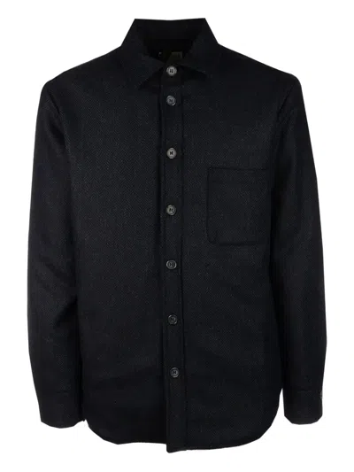 black herringbone pattern button front long sleeves patch pocket button cuffs