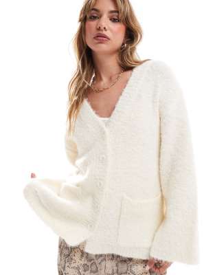 4TH & RECKLESS Wool Mix Button Through Longline Cardigan In Off White