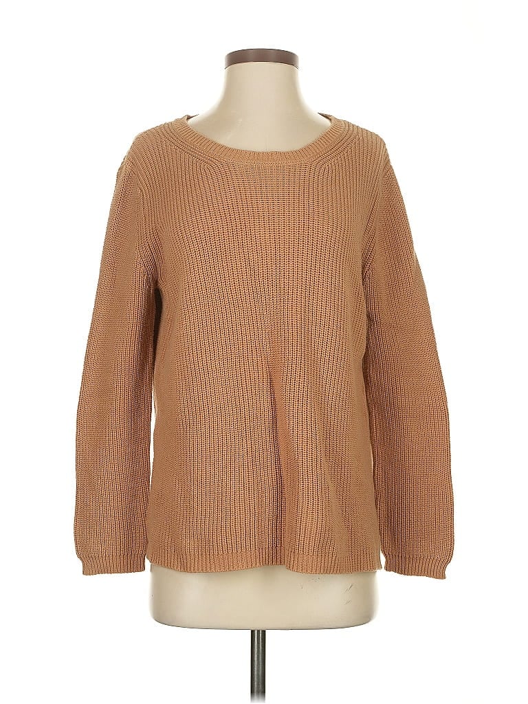 525 America Pullover Sweater, Size: Small. Item Details: Tan, Solid Pattern, Scoop Neck, Long Sleeve, Peplum, Women's Tops, 100% Cotton
