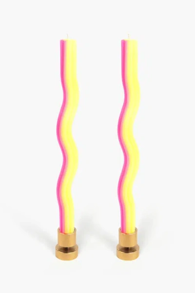 Wiggle Candles combine a functional dining candle with fun, joy, and experiment. Bright color combinations are squeezed together in an undulating shape to create a sense of motion. Designed by Dutch designer Lex Pott, each pack of two fits standard candleholders and adds playful style to any table. Paraffin wax candle Burn time 10 hours Materials: Cotton wick Pack of 2 Designed by Dutch designer Lex Pott Fits standard 7/8" candleholders (holder not included) Perfect for gifting