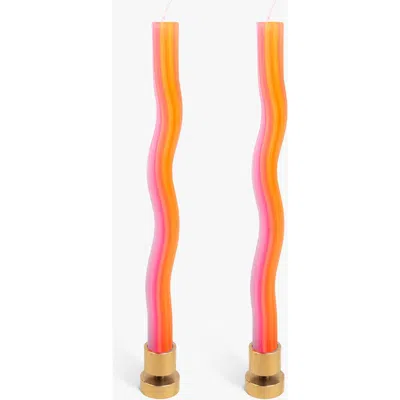 Wiggle Candles combine a functional dining candle with fun, joy, and experiment. Bright color combinations are squeezed together in an undulating shape to create a sense of motion. Designed by Dutch designer Lex Pott, each pack of two fits standard candleholders and adds playful style to any table. Paraffin wax candle Burn time 10 hours Materials: Cotton wick Pack of 2 Designed by Dutch designer Lex Pott Fits standard 7/8" candleholders (holder not included) Perfect for gifting