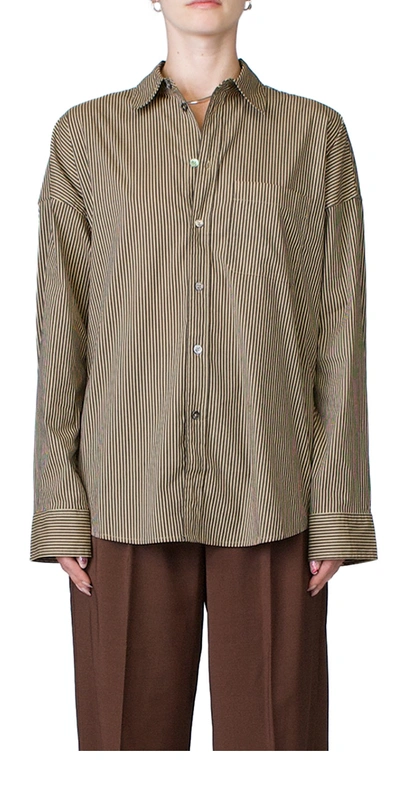 Uniform Button Down Top In Tan/grey Stripe In Multi