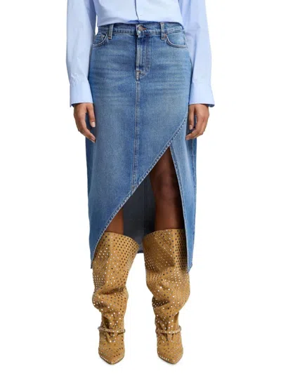 7 FOR ALL MANKIND Women's Libby Cut-out Midi-skirt In Blue