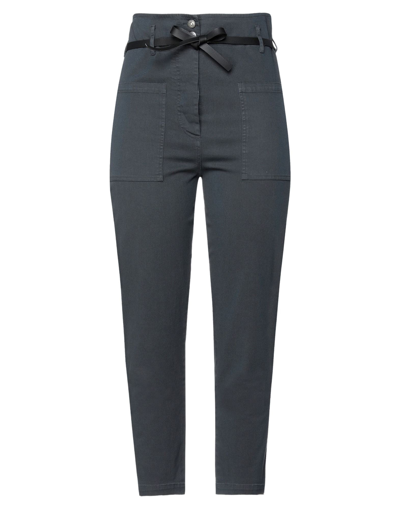 gabardine, belt, solid colour with appliqués, high waisted, tapered leg, regular fit, button closing, multipockets, stretch , Color: Midnight blue , Size: S