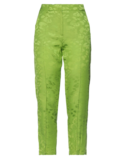 jacquard, satin, leopard-print, metal applications, mid rise, regular fit, tapered leg, hook-and-bar, zip, multipockets , Color: Green , Size: XS