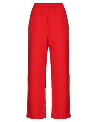 crepe, contrasting applications, solid color, high waisted, regular fit, straight leg, multipockets , Color: Red , Size: XS