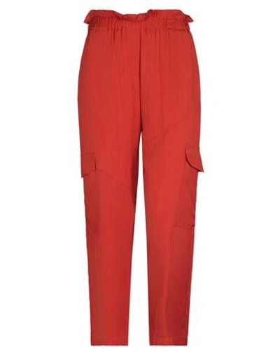 twill, no appliqués, high waisted, regular fit, straight leg, elasticized waist, multipockets, basic solid color , Color: Red , Size: M