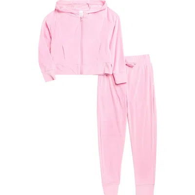 90 DEGREE BY REFLEX Kids' Rib Velour Castle Zip Hoodie & Joggers Set In Pink