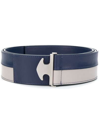 Grey and navy leather utility strap from A-COLD-WALL* featuring a square body and stitching details.
