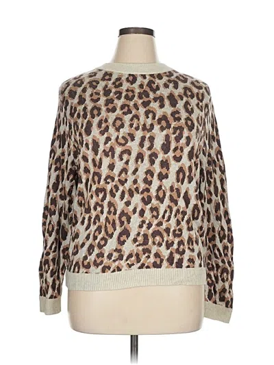 A New Day Pullover Sweater, Size: X-Large. Item Details: Tan, Animal Print Pattern, Crew Neck, Long Sleeve, Women's Tops, Cotton/Rayon/Nylon