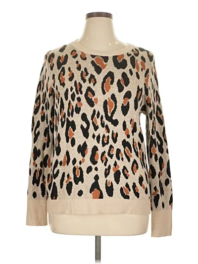 A New Day Pullover Sweater, Size: X-Large. Item Details: Tan, Animal Print Pattern, Crew Neck, Long Sleeve, Women's Tops, Cotton/Rayon/Nylon
