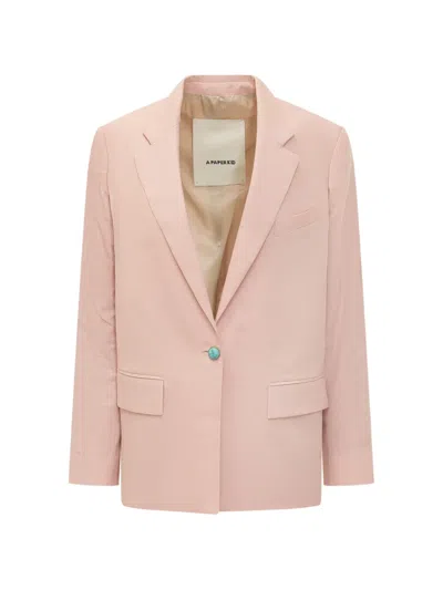 pink button detail flap pockets notched lapels long sleeves single-breasted