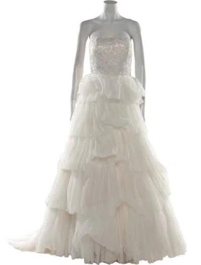Abella Evening Gown Neutrals Patterned Lace, Beaded & Embroidered Accents Strapless | Abella Patterned Long Dress in Neutrals, Women's XL