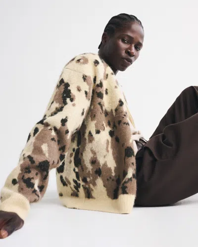 ABERCROMBIE & FITCH Fuzzy Animal Print Cardigan In Pattern