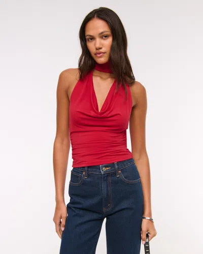 ABERCROMBIE & FITCH Halter Cowl Neck Scarf Top In Red