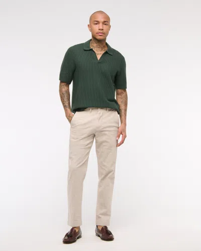 ABERCROMBIE & FITCH Straight Linen-blend Fixed Waist Pant In Brown