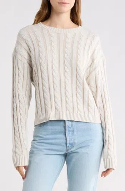 Layer on charm with this pullover crewneck sweater featured in a classic cable-knit pattern. Crewneck Long sleeves 60% cotton, 40% acrylic Machine wash, dry flat Imported