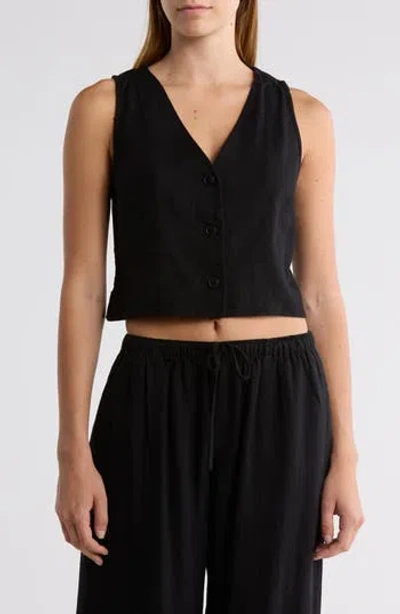 This season-staple vest is crafted from a lightweight linen-blend fabric. Tonal buttons and tailored seams offer a polished yet laid-back vibe to this sleeveless style. Button front closure 55% linen, 45% rayon Machine wash, tumble dry Imported