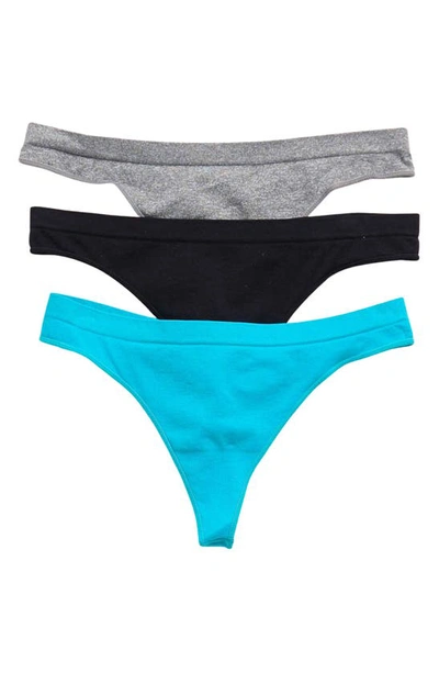 A seamless thong creates a smooth silhouette under your clothing. Pack of 3 Thong cut Partially lined Green and Black: 92% nylon, 8% spandex; Grey: 62 % polyester, 32% nylon, 6% spandex Machine wash cold Imported