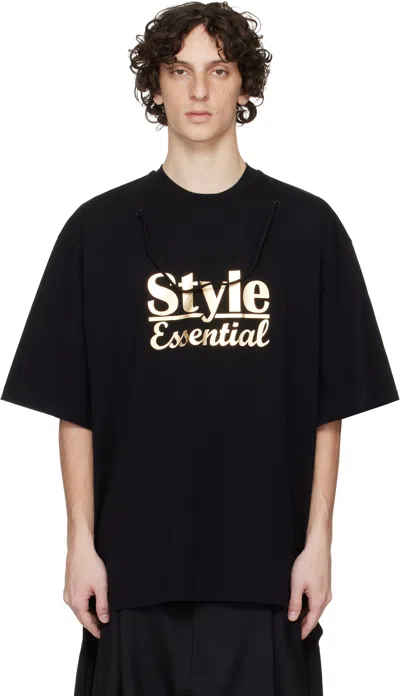 Cotton jersey T-shirt. · Rib-knit crewneck · Cord trim and printed text at front · Dropped shoulders Supplier color: Black