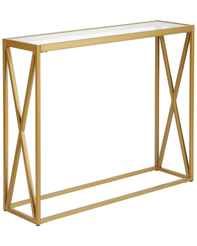 Color/Finish: Gold Brass Design Details: Featuring Modern Geometric Sides, This Console Table Is The Perfect Addition To Your Living Room Or Entryway. The Glass Tabletop Can Hold Up To 40 Lbs And Will Welcome Any Guest With The Beautiful View Of Flowers, Your Favorite Photos And Any Other Trinket You Choose. The Neutral Metallic Finish Allows It To Blend Seamlessly With Your Existing Color Scheme And Decor Style. Measurements: 36In X 10In X 30In Metal/Glass Clean With A Soft, Dry Cloth; No Harsh Chemicals Or Abrasive Cleaning Materials. Fully Assembled Imported