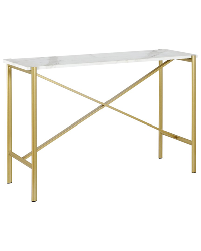Color/Finish: Gold Design Details: Geometric Design Takes This Modern Console Table To The Next Level. A Seamless Blend Of Mixed Materials Gives This Table An Industrial Style While The Lustrous Metallic Finish Keeps Your Space Warm And Inviting. Easy To Assemble And Easy To Style, The Faux Marble Top And On-Trend Frame Shape Make It The Perfect Addition To Your Living Room Or Bedroom Ensemble. Measurements: 46In X 14In X 30In Metal/Faux Marble Clean With A Soft, Dry Cloth; No Harsh Chemicals Or Abrasive Cleaning Materials. Fully Assembled Imported