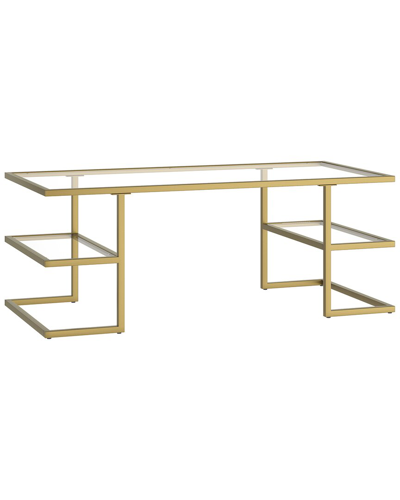 Color/Finish: Gold Brass Design Details: Form Meets Function In The Design Of This Modern Contemporary Coffee Table. The Two Floating Side Shelves Create Extra Storage Possibilities, Leaving Plenty Of Open Space Beneath The Tabletop To Tuck Away An Ottoman Or Set Of Poufs. Crafted From Durable Steel And Tempered Glass, This Table's Geometric Lines Create An Eye-Catching Centerpiece In Your Living Space. Measurements: 47In X 22In X 18In 2 Shelf/Shelves Metal/Glass Clean With A Soft, Dry Cloth; No Harsh Chemicals Or Abrasive Cleaning Materials. Fully Assembled Imported