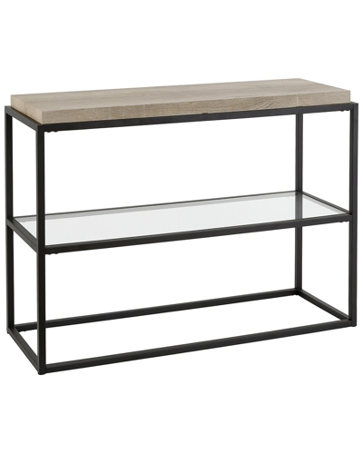Color/Finish: Blackened Bronze Design Details: Create A Warm Welcome With This Clean But Consumable Console Table. The Blackened Bronze Frame Is Set Off By The Limed Oak Colored Top And Glass Lower Shelf. Whether Tucked Behind The Sofa Or A Display For A Menagerie Of Trinkets, This Console Table Is The Perfect Backdrop To Create A Magazine-Ready Display. Measurements: 42In X 14In X 31In 1 Shelf/Shelves Metal/Glass/Mdf Clean With A Soft, Dry Cloth; No Harsh Chemicals Or Abrasive Cleaning Materials. Fully Assembled Imported