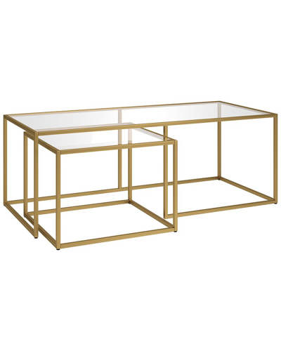 Color/Finish: Gold Brass Design Details: This Nested Coffee Table Set Is The Definition Of Modern Elegance. With Sleek Metal Frames And Glass Tops, These Tables Add A New Element Of Design To Your Home, Serving As The Perfect Place For Your Decorative Items. Their Compact Design Allows These Tables To Be Nestled Together For A Combined Look, Or Separated To Display Your Matching Table Set Throughout Your Living Room, Den, Or Office. Measurements: 50In X 22In X 18In Metal/Glass Clean With A Soft, Dry Cloth; No Harsh Chemicals Or Abrasive Cleaning Materials. Fully Assembled Imported