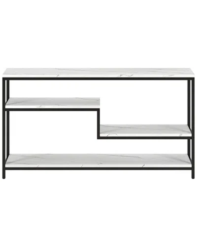 Color/Finish: Blackened Bronze/Marble Bring A Touch Of Mid-Century Glam Design To Your Living Room Or Entryway With This Modern Console Table. Crafted Of Durable Steel In A Handcrafted Finish, This Console Table Features An Eye-Catching Faux Marble Tabletop That Provides A Perfect Platform For Framed Photos Or A Pair Of Stylish Lamps. A Two-Tiered Shelf Adds Visual Interest And Creates Extra Storage Space Wherever You Need It Most. Measures 55In Wide X 12In Deep X 29.75In High 3 Shelves Metal/Faux Marble Clean With A Soft, Dry Cloth; No Harsh Chemicals Or Abrasive Cleaning Materials. Assembly Required Imported