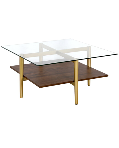 Color/Finish: Gold/Brown Brass/Walnut Design Details: This Mid-Century Inspired Coffee Table Is The Perfect Pick For Your Living Room Or Den Ensemble. Its Base Features Four Tapered Legs Connected At The Center. The Top Is A Transparent Tempered Glass Which Shows Off The Architectural Connection And Carries The Rectangular Design Through The Frame. The Lower Shelf Is Finished In Faux Walnut, Playing Off The Tempered Glass In Size And Shape. Measurements: 32In X 32In X 17In 1 Shelf/Shelves Metal/Glass/Mdf Clean With A Soft, Dry Cloth; No Harsh Chemicals Or Abrasive Cleaning Materials. Fully Assembled Imported