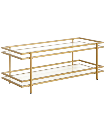 Color/Finish: Gold Brass Design Details: A Bold Linear Profile Sets This Modern Coffee Table Apart. Its Double-Barred Steel Frame Offsets The Durable Tempered Glass Tabletop And Shelf, Creating A Secure And Artful Backdrop For Framed Photos, Flowers, Or Your Favorite Collections Of Decorative Items. The Soft Industrial Look And Neutral Metallic Finish Pairs Seamlessly With Your Existing Color Scheme And Džcor Style. Measurements: 45In X 20In X 18In 1 Shelf/Shelves Metal/Glass Clean With A Soft, Dry Cloth; No Harsh Chemicals Or Abrasive Cleaning Materials. Fully Assembled Imported