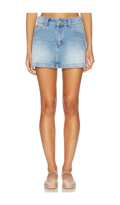 Abrand Aline Skirt in Blue. Size 31. Also in 23, 24, 25, 26, 27, 28, 29, 30, 32, 33, 34. Abrand Aline Skirt in Blue. Size 23, 24, 25, 26, 27, 28, 29, 30, 32, 33, 34. 100% cotton. Made in China. Machine wash cold. Unlined. Zip fly with button closure. Midweight denim fabric. 5-pocket styling. Skirt measures approx 12.5 in length. ABRR-WQ45. A61K15.