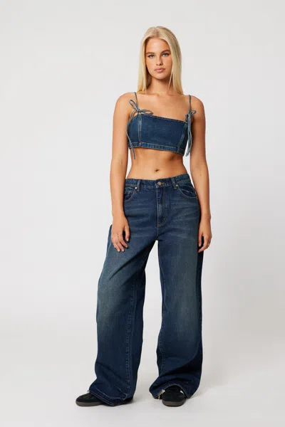 Designed with your curves in mind, this bralette is all about showing off your silhouette Featuring adjustable straps and delicate tie-up bows, it offers the perfect amount of coverage while keeping things playful (and you always in control) The fitted design hugs your body in all the right places, while the stretch denim keeps it breathable and comfortable Double denim is the ultimate show-stopper for this look. Want to mix up textures? Grab a longline skirt and pointed heels Cory is a dark indigo denim with a blue-grey tint, serving up a classic 2000s style This is made from a comfort stretch denim. This fits perfectly from the moment you put it on For your perfect fit, go for your regular size. For a larger bust, size up and tighten the adjustable straps