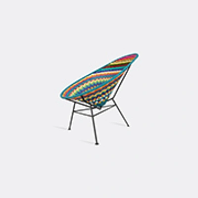 Mexican craftsmanship meets midcentury design in this iconic statement chair. Acapulco Design’s dedicated reinvention of the classic 1950s 'Acapulco' chair pays homage to the infinite potential of this timeless design. The 'Acapulco' chair is a practical, comfortable seating solution and retro design statement for use in and outdoors. Contemporary takes on a classic include the 'Acapulco Oaxaca' model in Mexican colors. This version of the design distinguishes itself from the classic version, whose seat is characterized by minimalist lines, with a closed, strong wicker structure. The chair’s patterning and multicolor presentation evokes the spirit of the state of Oaxaca to radiant, inimitable effect.