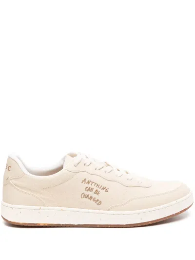 beige embroidered logo to the side round toe front lace-up fastening branded insole flat rubber sole