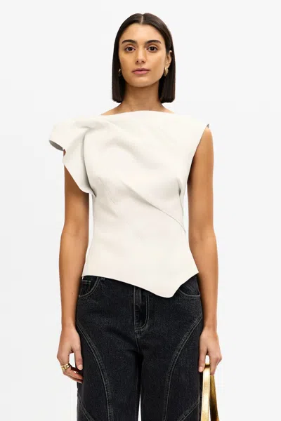 The Cornmore Top in Ivory exemplifies architectural minimalism, designed for modern event dressing and elevated everyday wear. Its bonded, woven fabrication offers a sculpted silhouette that sits refined against the frame, complemented by an invisible centre back zip for a seamless finish. An opaque construction allows for confident styling, uniting function and elevated sophistication.- Structured top - Bonded fabrication - Strategic pleated and gathered details - Structured silhouette - Centre back invisible zip closure - Opaque, unlinedModel is 175cm / 5'9'' wearing an AU 8 / US 4Composition: Face: 100% Polyester Back: 96% Polyester, 4% Spandex.