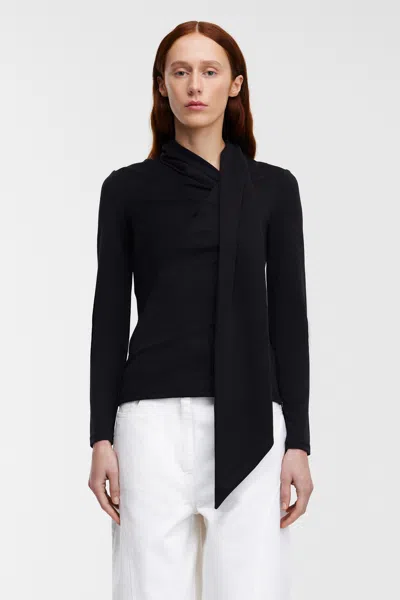 Introducing the Ramsgil Top in Black, a versatile addition for the stylish wardrobe. Crafted in soft jersey, this long-sleeve design features a fitted silhouette with a clean finish. A neck sash adds understated sophistication, while the body lining ensures comfort and structure. Completed with an invisible center-back zip for a seamless look, this top is a versatile staple that'll be worn for years to come.- Soft jersey fabrication- Neck sash detail- Invisible CB zip- Lined bodyModel is 175cm / 5'9" wearing an AU 8 / US 4Composition:Main: 70% Viscose, 30% PolyesterLining: 95% Polyester, 5% Elastane.