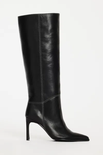 Crafted in smooth black leather, the Willow Boot is a timeless knee-high silhouette with a sleek stiletto heel. A pointed toe and clean seam detailing make it the perfect day-to-night statement.Details:- Knee-high boot- Pointed toe- Stiletto heel- Leather- 9.5cm heel.