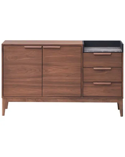 Color/Finish: Engineered Stone & Walnut Design Details: This Mid-Century-Modern-Inspired Bevis Server Is For Those That Are Seeking A Minimalist Design With Some Flare. This Server Boasts An Ample Side Cabinet That Is Suitable For Wine Bottles And Tableware. The Side Drawers Are Great For Keeping Clutter At Bay And Storing Coffee Pods. The Tabletop Features An Engineered Stone Insert That Makes It Perfect For An At-Home Coffee Bar Setup. Measurements: 53In X 18In X 31In 2 Door(S) 3 Drawer(S) Assembly Required Imported