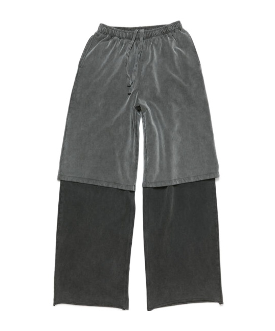 Layered trousers feature a top layer crafted from fleece cotton, a garment-dyed finish, and fluid long-length trousers as an under-layer. Detailed with logo embroidery at the back. Cut to a loose fit and long length. Loose fit . Mid waist .Elasticated waistband with drawcordLong length Double layered construction Logo embroidery Side pockets Model is 179 cm / 5'11 and wears a size SStyle ID: FN-WN-TROU001374 Shell: 100% Organic cotton, Contrast: 100% Organic cotton