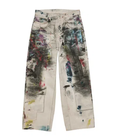 Fabric: Heavyweight, non-stretch denim. Splatter paint print. Button fly. 5-pocket styling. Shell: 100% cotton. Hand wash. Made in Italy. Measurements: Measurements from size M Rise: 11.75in / 30cm Inseam: 32in / 81cm Leg opening: 22in / 56cm