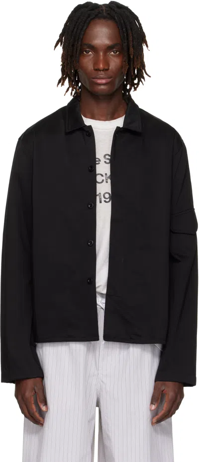 Heavyweight organic cotton satin jacket. · Spread collar · Button closure · Seam pockets at waist · Flap pocket at sleeve · Logo patch at back collar Supplier color: Black