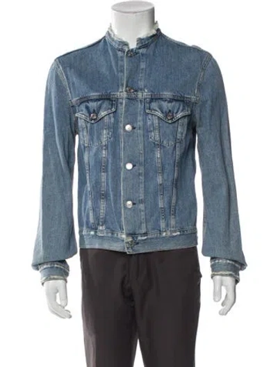 Acne Studios Denim Jacket Blue Woven Lining Distressed Accents & Collar Flap Pockets Fit: Outerwear by Acne Studios typically fits slim, consider taking a size up. | Acne Studios Denim Jacket in Blue, Men's S