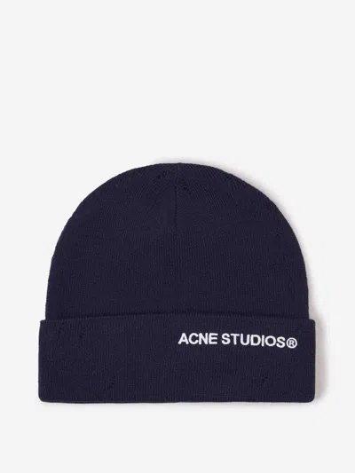 ACNE STUDIOS Distressed Logo Beanie In Blue