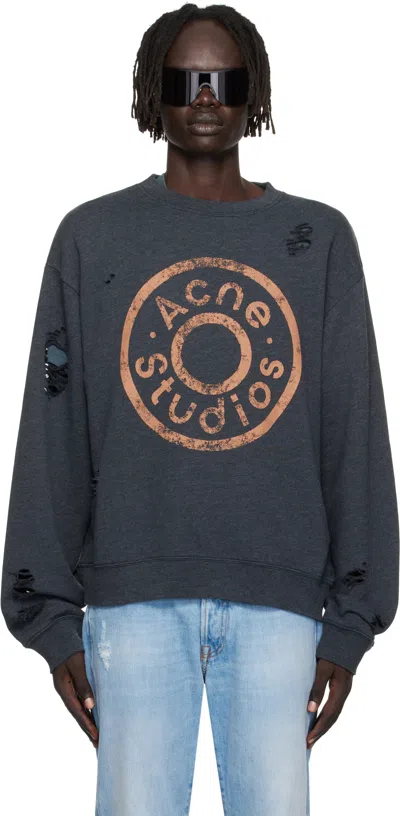 ACNE STUDIOS Distressed Logo Printed Sweatshirt In Grey