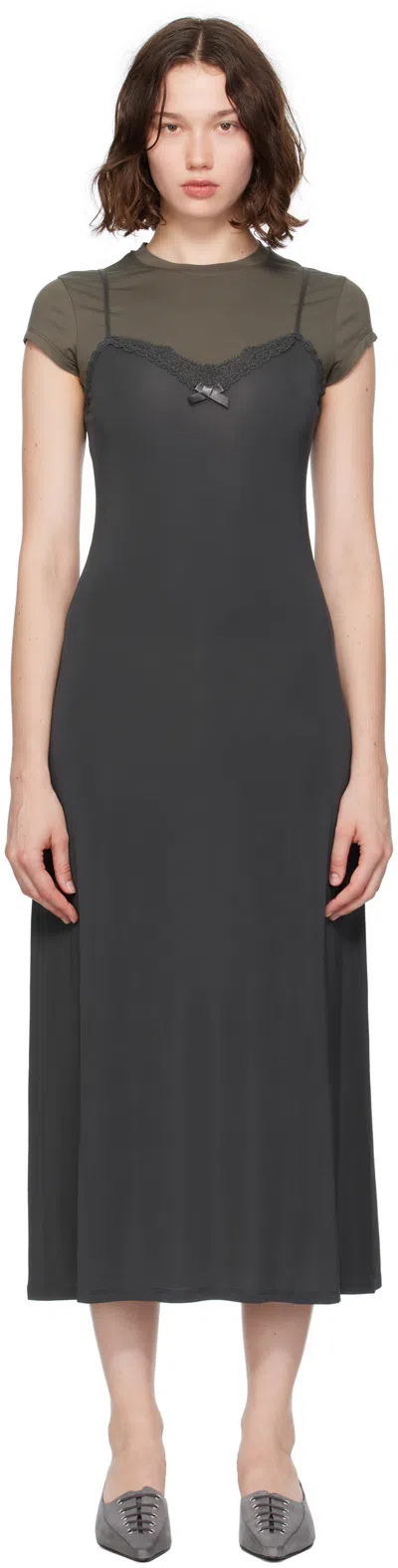 ACNE STUDIOS Gray Layered Jersey Midi Dress In Black