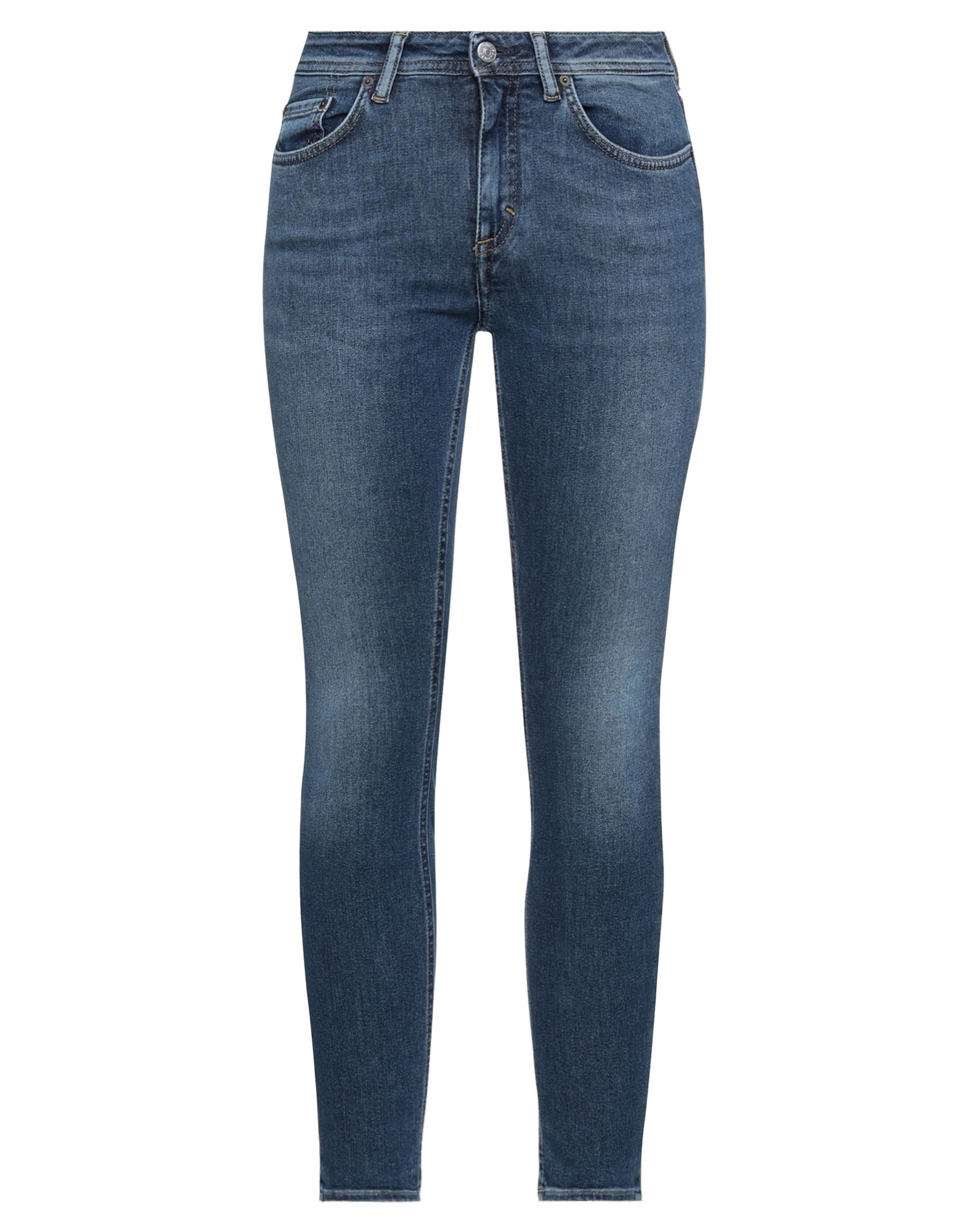 ACNE STUDIOS Jeans. denim, faded, metal applications, logo, solid color, medium wash, mid rise, belt loops, front closure, button, zip, multipockets, small sized. 94% Cotton, 5% Polyester, 1% Elastane