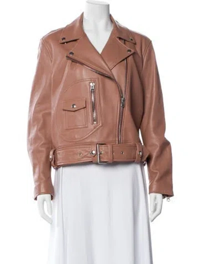 Pre-owned Lamb Leather Biker Jacket In Neutral