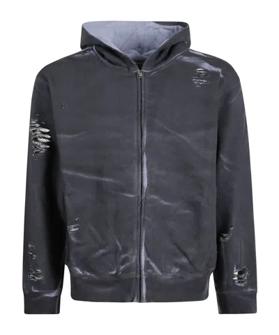 ACNE STUDIOS Logo Detailed Distressed Hoodie In Black